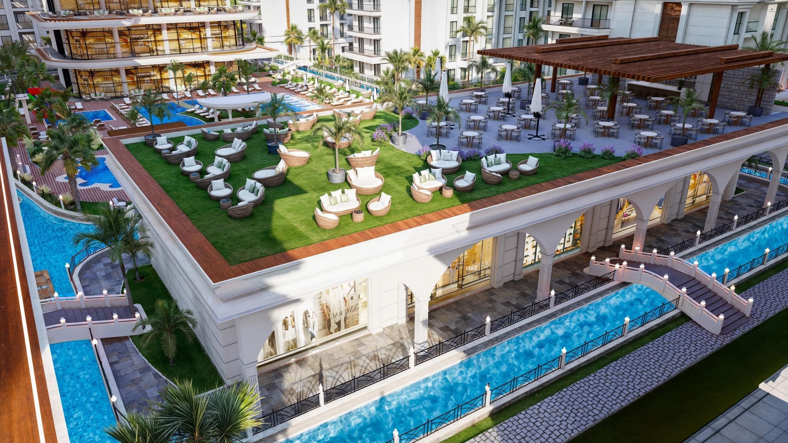 Kapalı ve Açık Havuzlar (çocuk alanı, jakuzi adası, su kaydırakları)